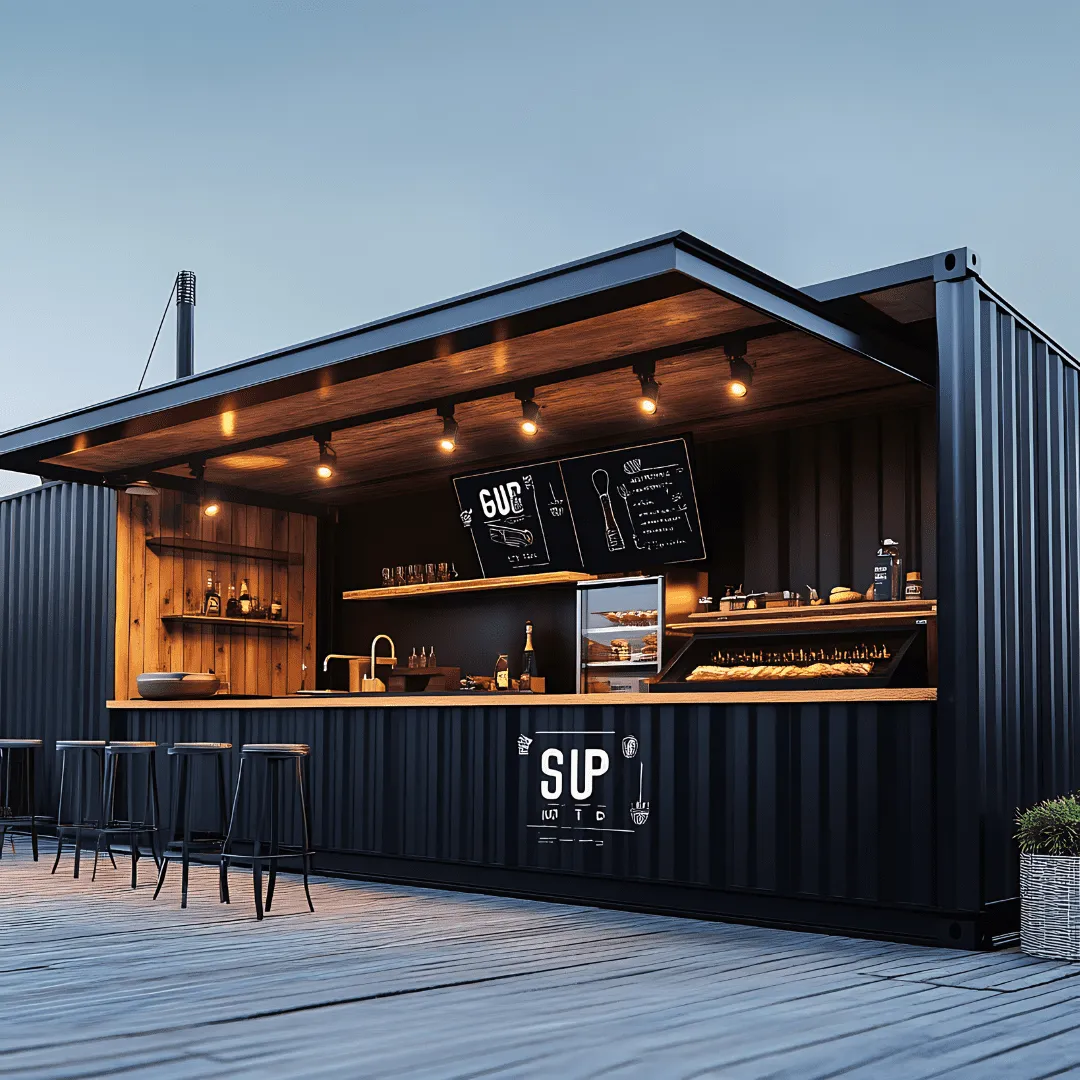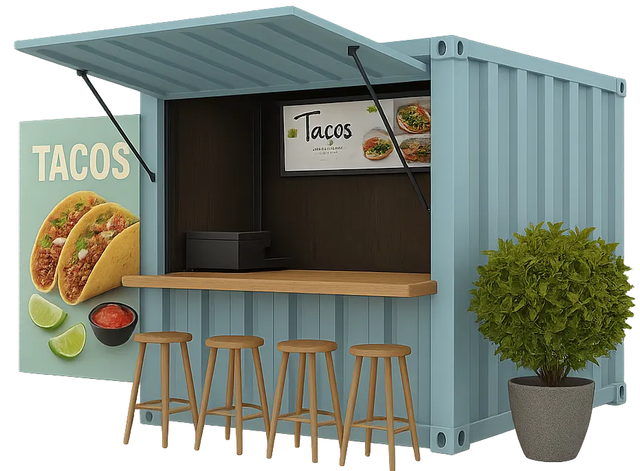 Nuestros contenedores se ensamblan en fábrica bajo estrictos controles. Eso significa que no dependes del clima, ni de obras lentas – en pocos días tu cafetería o restaurante está listo.